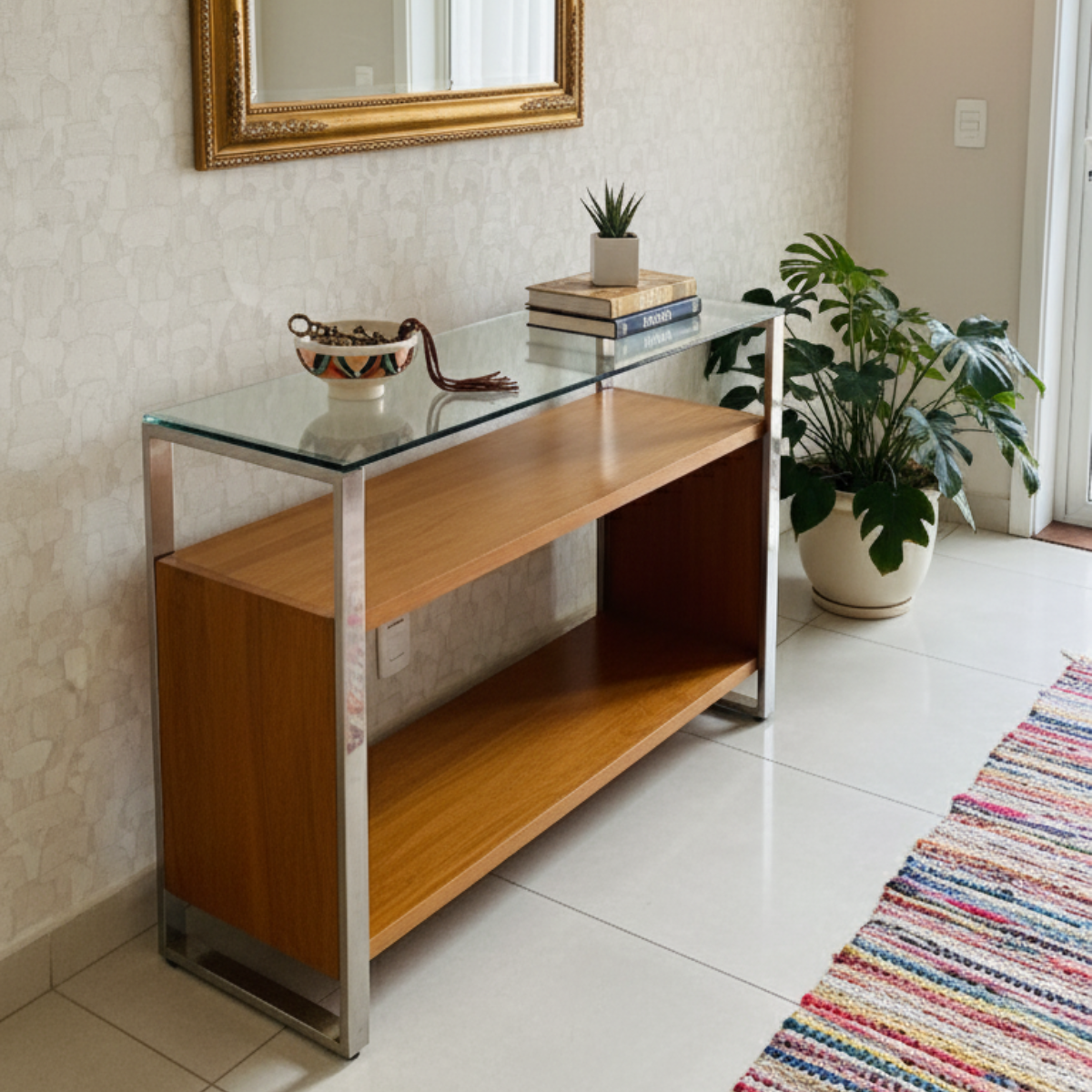 O Aparador Ametista é uma peça versátil que pode ser usado tanto na sala de estar quanto hall de entrada e quarto. Com pés de inox, tampo de vidro e base de madeira suporta peso suficiente para você decorar seu ambiente da melhor forma possível.