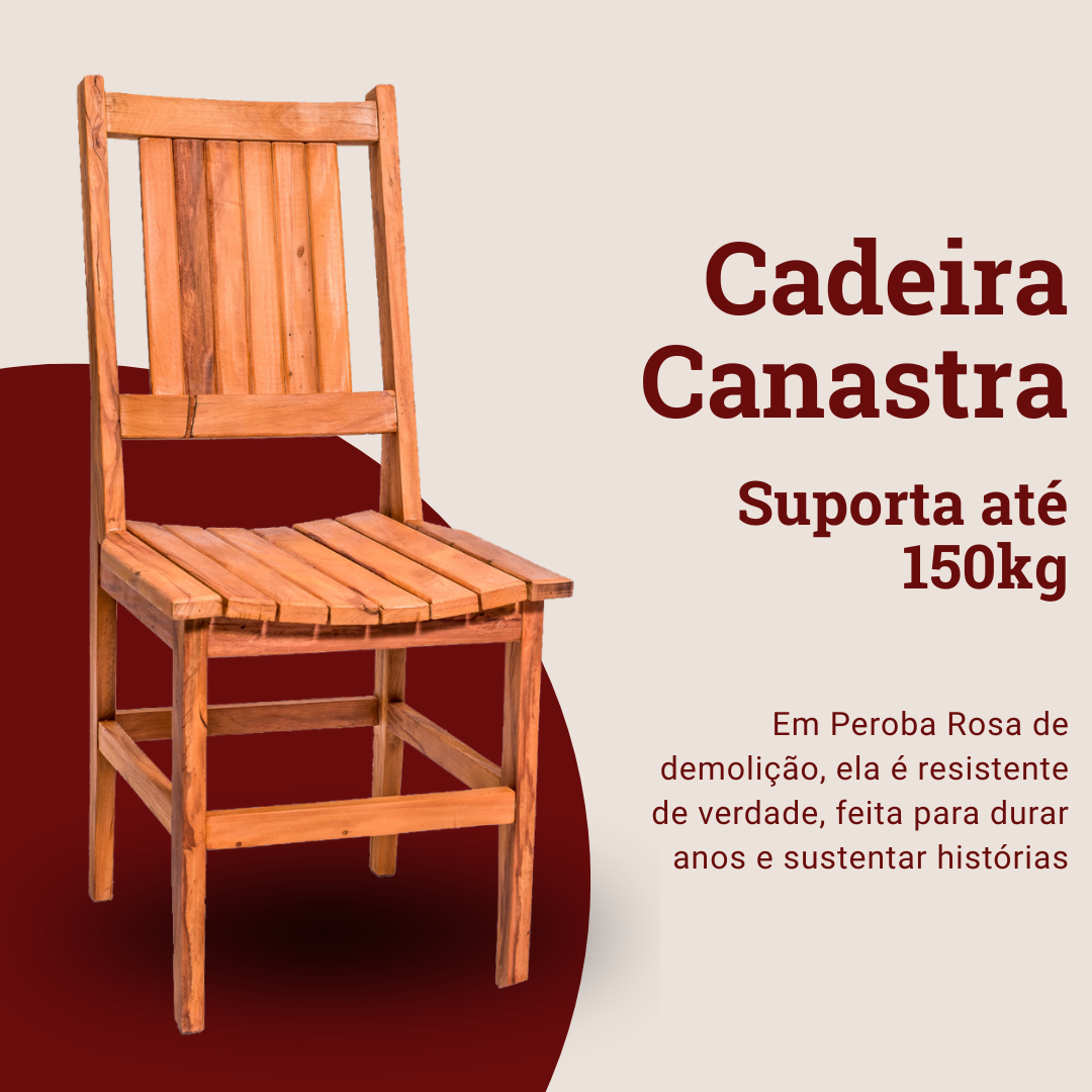 Conheça nosso modelo de Cadeira Canastra, com assento curvo e ripado e encosto ripado com aberturas laterais. Um modelo que combina com todos os tipos de mesa trazendo riqueza de detalhes.