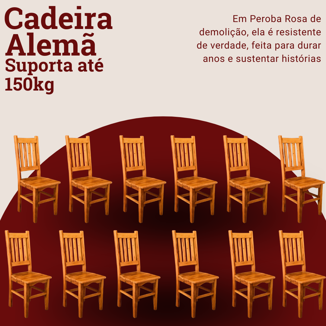 Kit com 12 Cadeiras Alemã, com assento liso e encosto ripado que proporcionam conforto sem igual. Ganhou muito destaque no último ano, se tornando uma das campeãs de vendas.