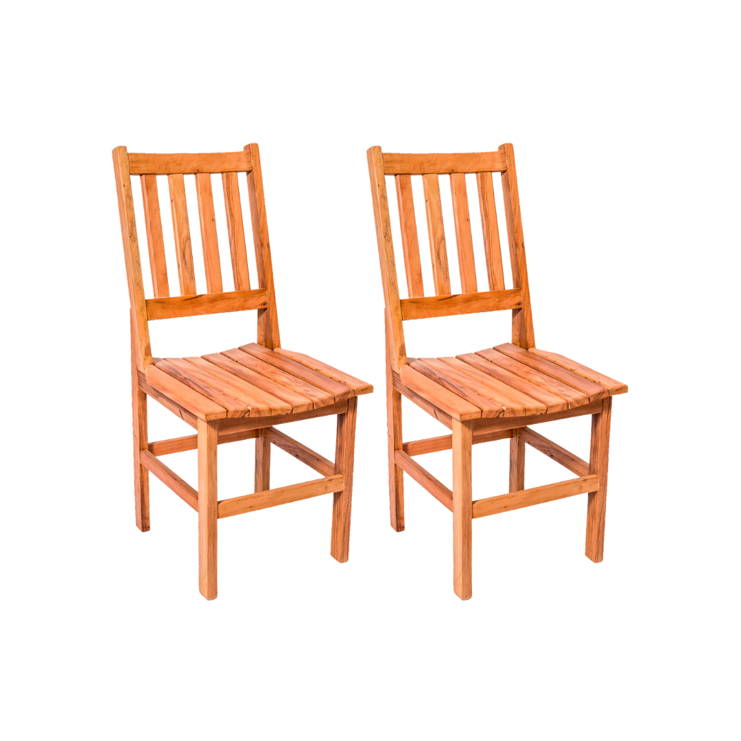 Kit com 2 Cadeiras Fortaleza, nosso modelo exclusivo com assento e encosto ripados e mais largos que as cadeiras tradicionais proporcionando mais conforto.