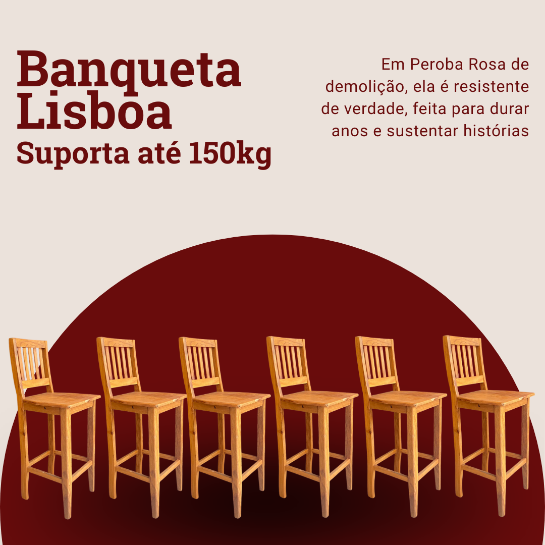 Kit com 6 Banquetas Lisboa, com assento liso e encosto ripado e curvo traz uma estabilidade melhor às costas proporcionando um conforto sem igual.
