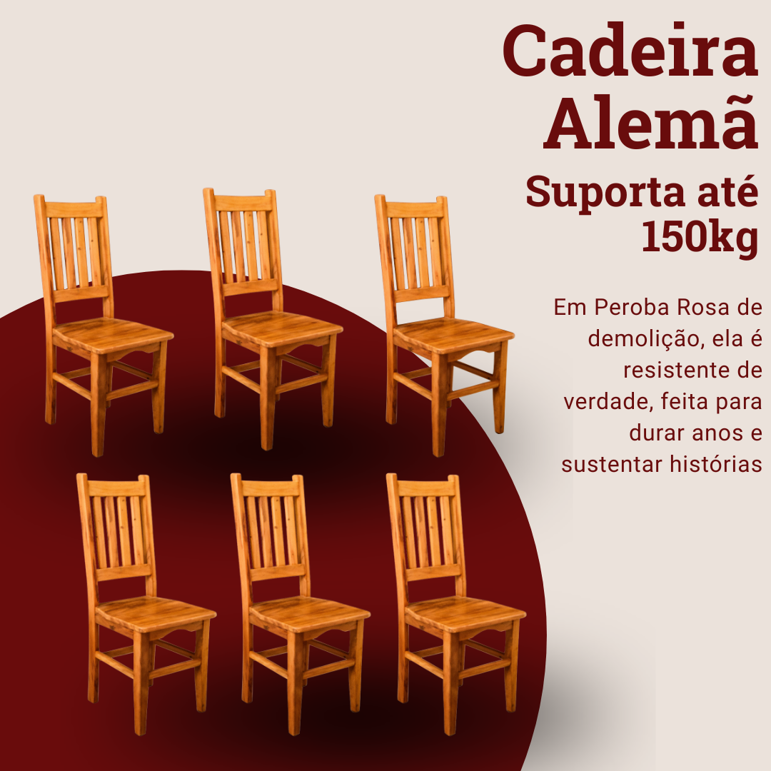 Kit com 6 Cadeiras Alemã, com assento liso e encosto ripado que proporcionam conforto sem igual. Ganhou muito destaque no último ano, se tornando uma das campeãs de vendas.